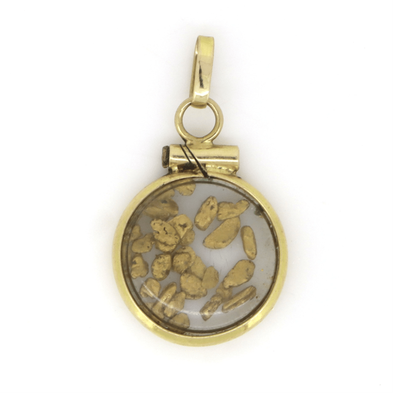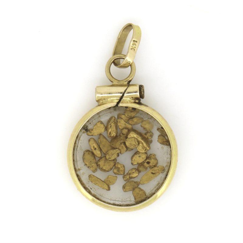 14K YELLOW GOLD, 1.48GRAMS PENDANT ENCASING NATURAL GOLD NUGGETS. Total Weight 1.48Grams. Note: Pre-Owned. 646003+9103