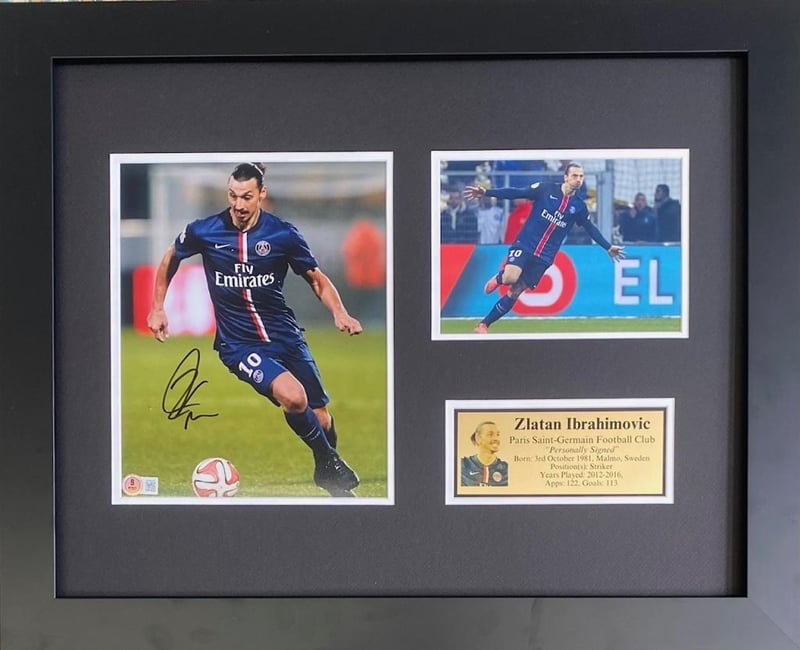 ZLATAN IBRAHIMOVIC (PSG FC) PERSOANLLY SIGNED 10" X 8" PHOTOGRAPH (BECKETT COA)Framed Using Double Mats, 2 Unsigned Photographs And A Plaque. Hand Signed By Zlatan Ibrahimovic Using A Black MarkerAccompanied By A Certificate Of Authenticity From BeckettCondition: Good - Refer Images488575+20