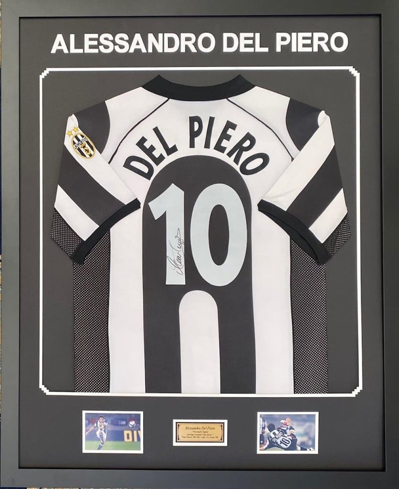 ALESSANDRO DEL PIERO PERSONALLY SIGNED JUVENTUS FOOTBALL CLUB JERSEY Framed Using Double Mats, 2 Unsigned Photographs And A Plaque. Hand Signed By Alessandro Del Piero Using A Black MarkerAccompanied By A Certificate Of AuthenticityCondition: Good - Refer Images488575+25
