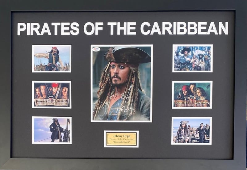 JOHNNY DEPP (PIRATES OF THE CARIBBEAN) PERSOANLLY SIGNED 10" X 8" PHOTOGRAPH (PSA/DNA COA) Framed Using Double Mats, 6 Unsigned Photographs And A Plaque. Hand Signed By Johnny Depp Using A Silver MarkerAccompanied By A Certificate Of Authenticity From Psa/DnaCondition: Good - Refer Images488575+27