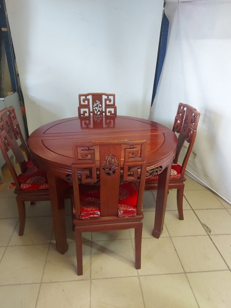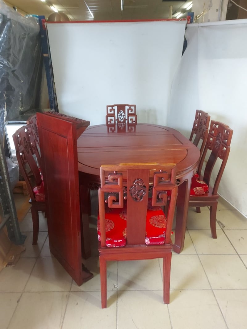 Extendable Dining Table, 6 Chairs, Oriental Styled Cushions,