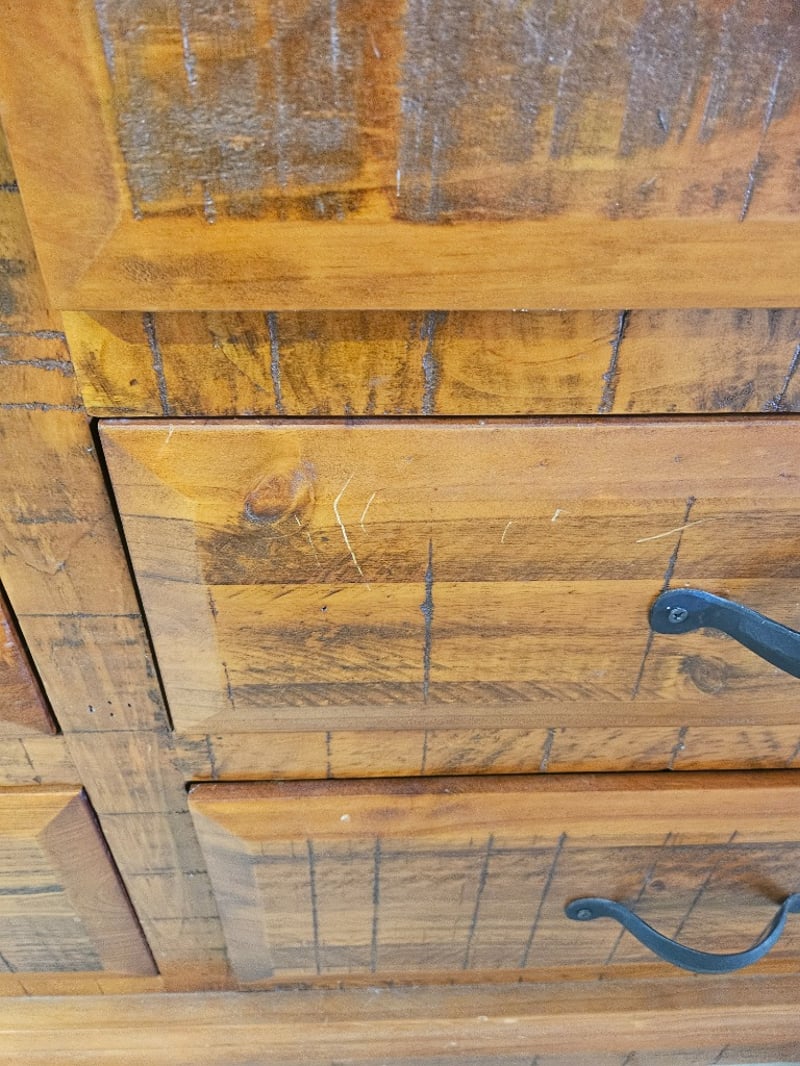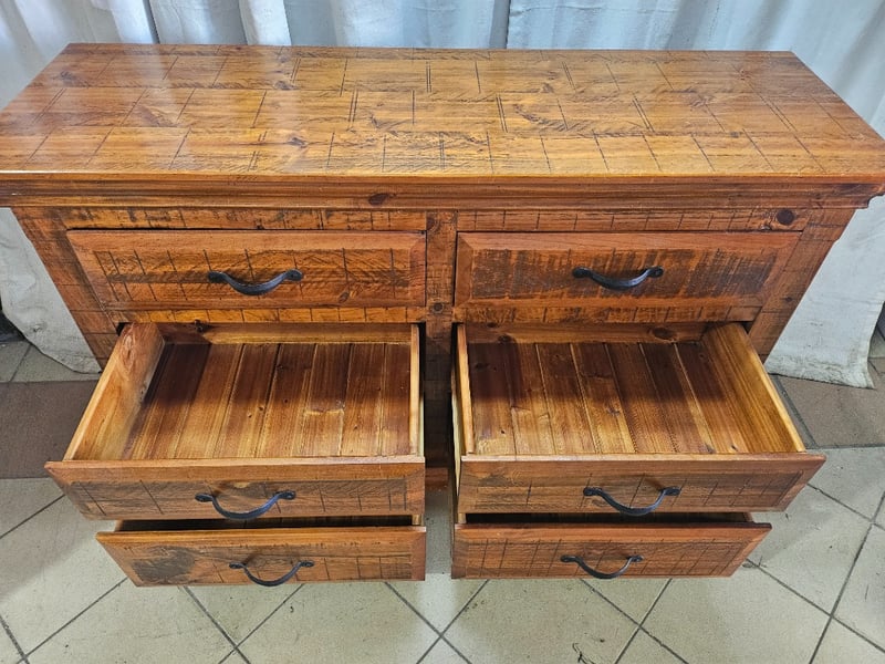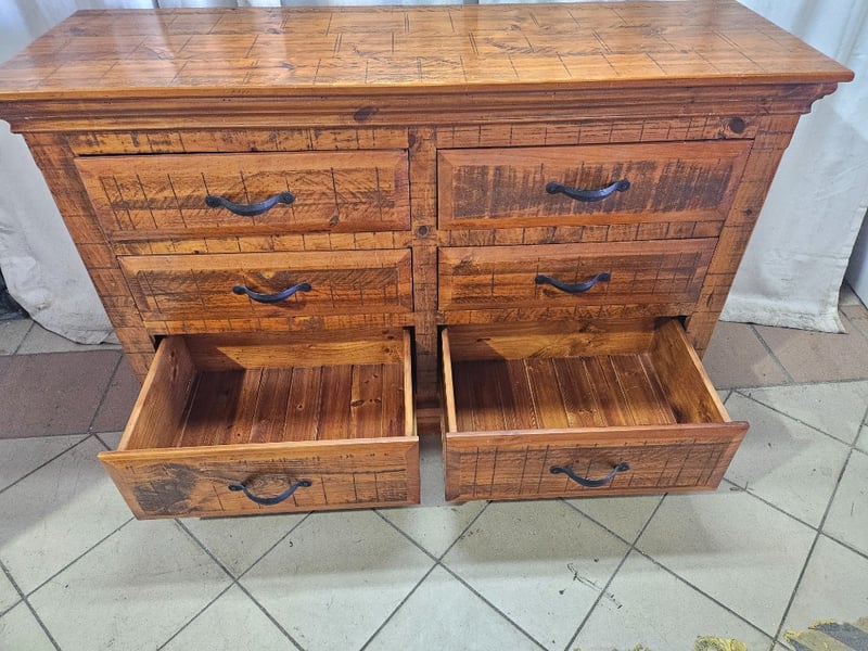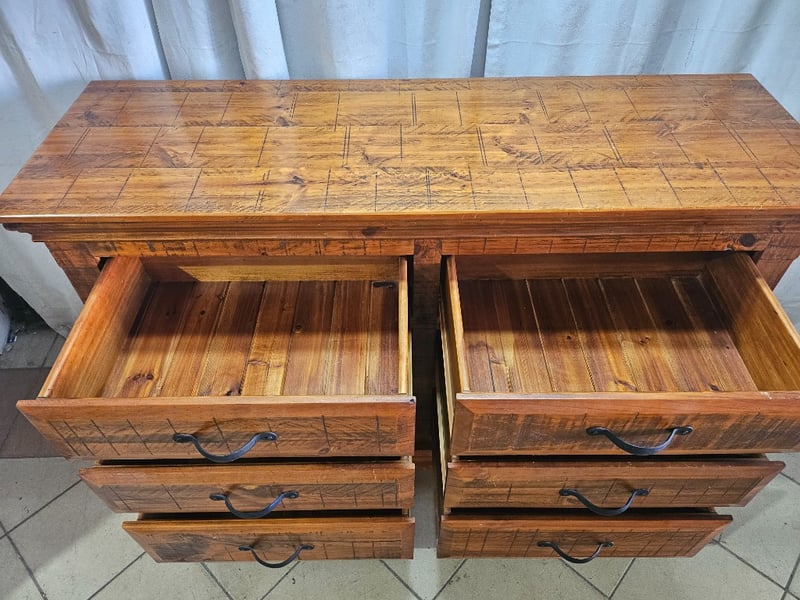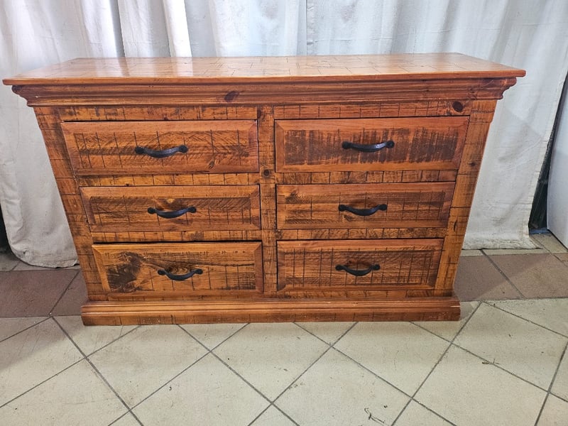 Wooden Dresser, 6 Drawers, Metal Handles DIMENSIONS: 90 cm (H), 143 cm (W), 46.5 cm (D)