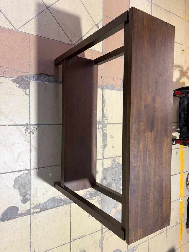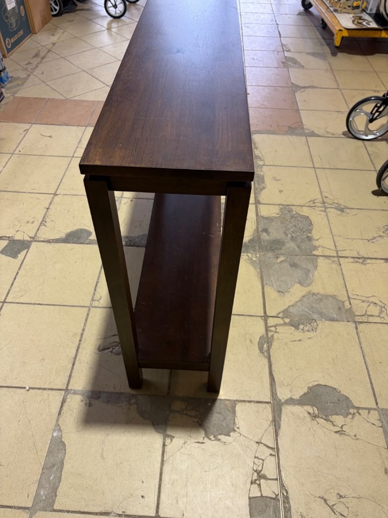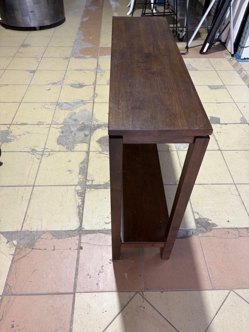 Side table, timber, brown finishDimensions: H: 80cm W: 96cm D: 28cm
