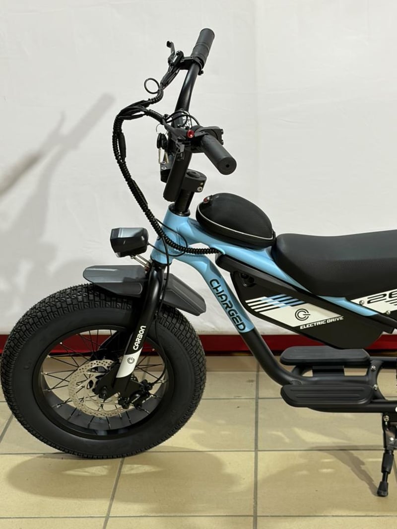 The Carbon Charged 2026 Model is a compact, fat-tyre