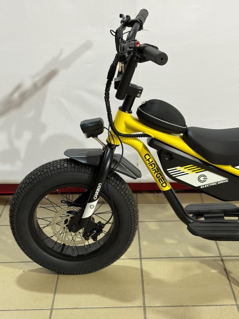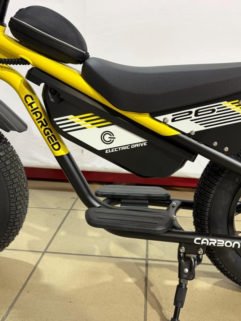 The Carbon Charged 2026 Model is a compact, fat-tyre