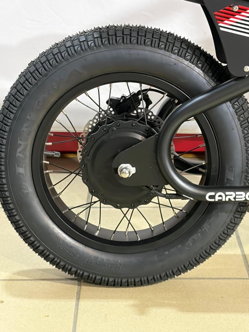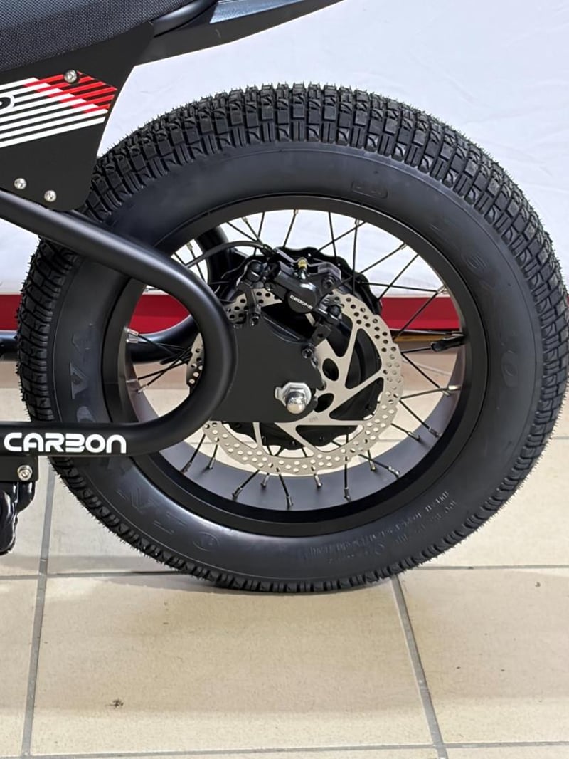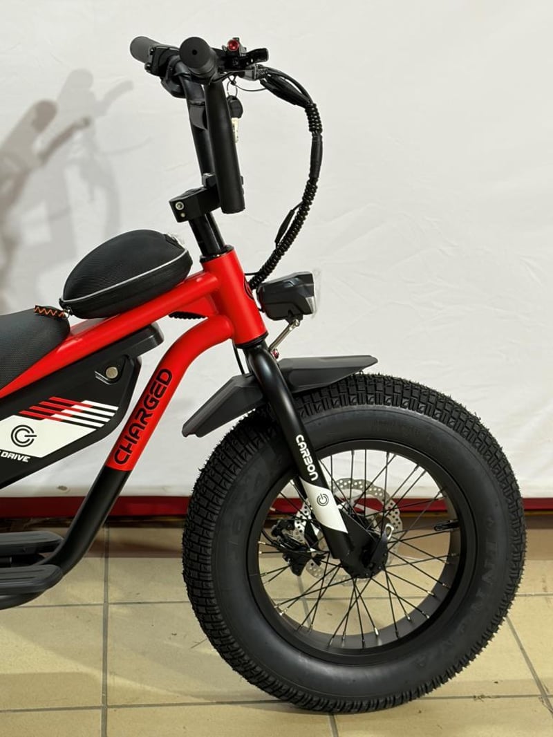 The Carbon Charged 2026 Model is a compact, fat-tyre