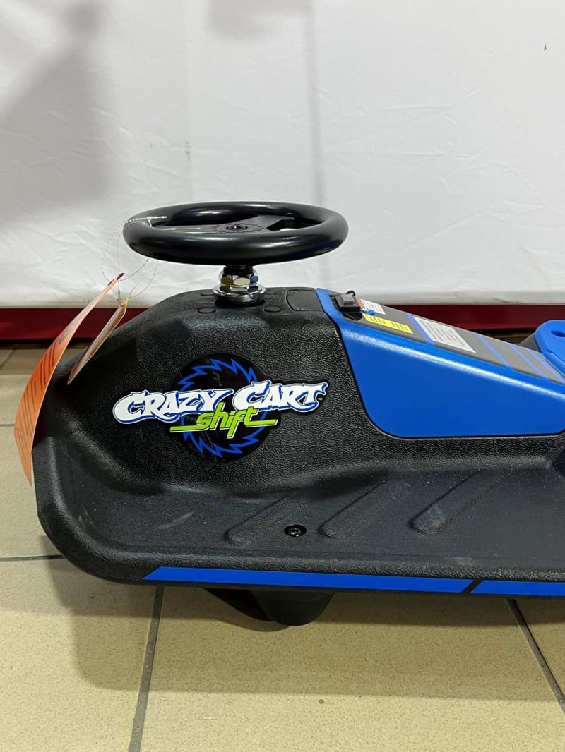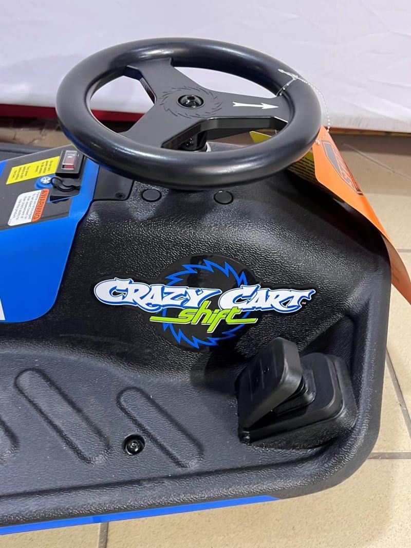 With the all new Crazy Cart® Shift™ younger kids can drive, spin, and drift like never before! Designed to be fun for riders of all skill-levels, the Crazy Cart Shift starts as a fun spin session and grows into an unparalleled drifting experience as riders become more familiar with the controls. A hidden top speed control switch allows parents to select the appropriate maximum speed for their child: 4 km/h for beginners and younger drivers or 13 km/h for the full Crazy Cart Shift experience