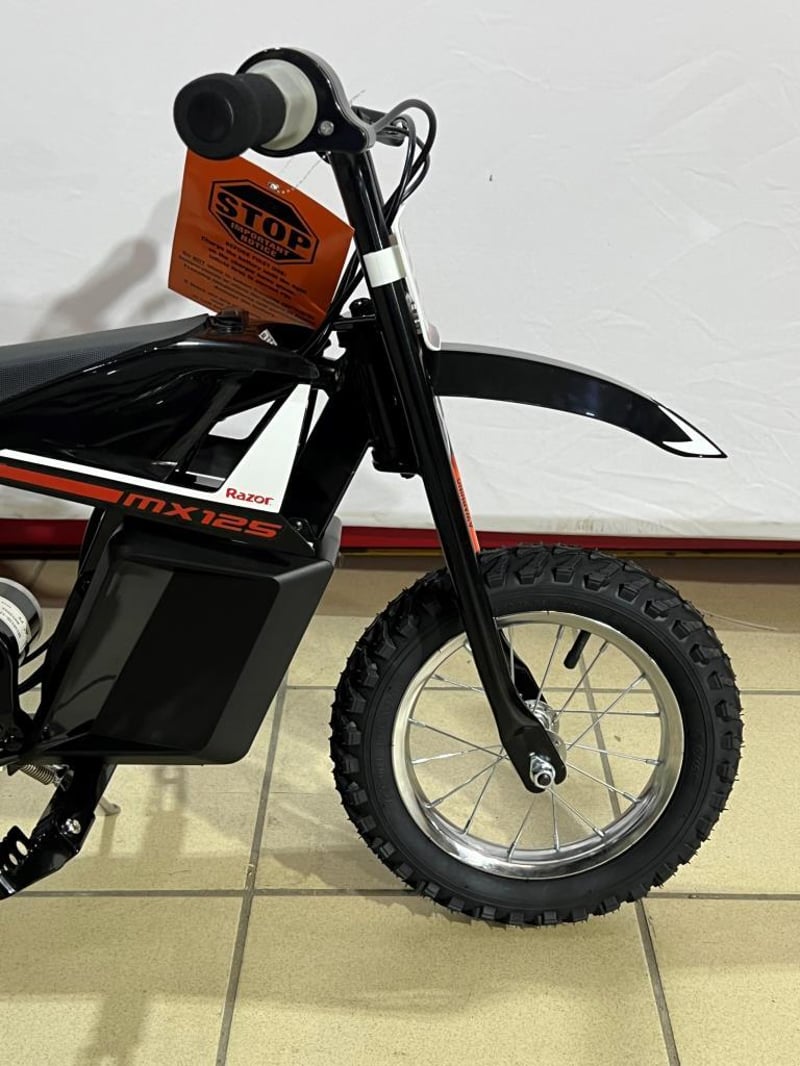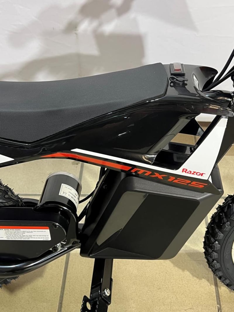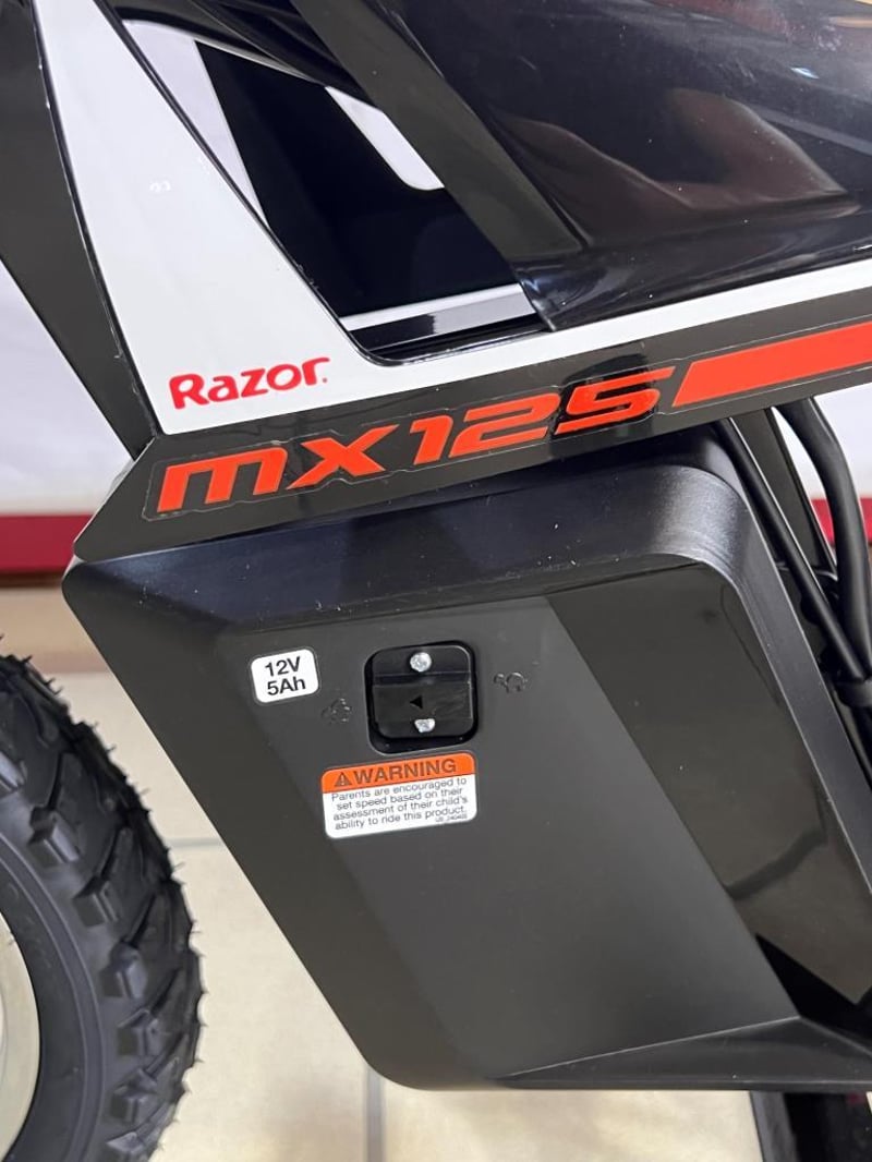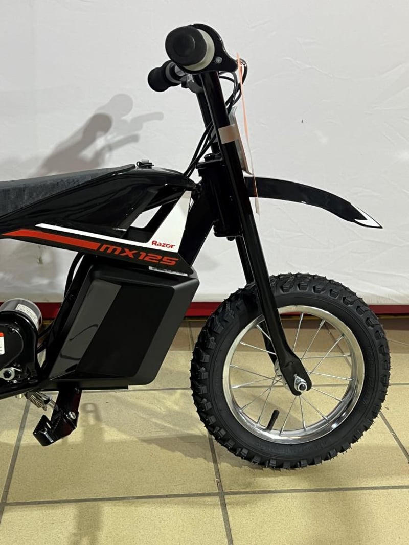 The MX125 is Razor’s smallest electric dirt bike, scaled down to size for riders ages 7 and up.