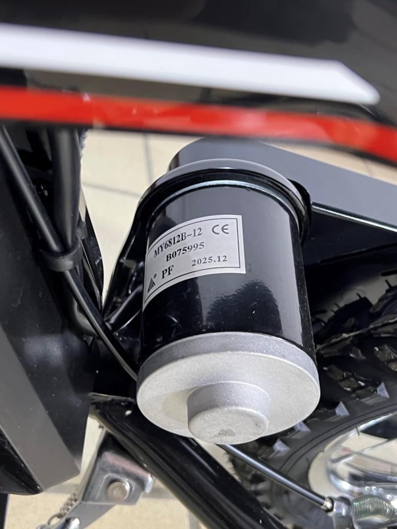 Designed with motocross dirt bike geometry, knobby tires and twist-grip throttle.