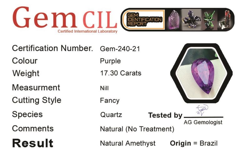 17.30 CARATS NATURAL QUALITY BRAZILIAN AMETHYST 17.30 Carats Natural Quality Brazilian AmethystStone = Natural AmethystWeight = 17.30 CaratsTreatment = Natural Colour = Purple Cut = Fancy Note = Gem Cil, Certified, Precise Custom Cut (Not Commercial) Condition: Good - Refer Images 0488571+21