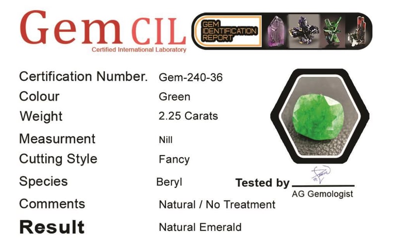 2.25 CARATS NATURAL GEMMY EMERALD 2.25 Carats Natural Gemmy EmeraldStone = Natural EmeraldWeight = 2.25 Carats Colour = Green Cut = FancyTreatment = No Oil (Natural)Origin = Swat (Pakistan) Note = Gem Cil, Certified, Precise Custom Cut (Not Commercial) Condition: Good - Refer Images 0488571+36