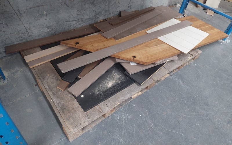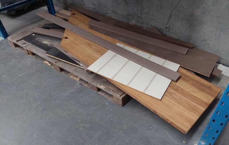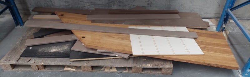 Assorted lot of wood panels and off cuts.Qty per pallet.Sold as lot. Notes: signs of wear.
