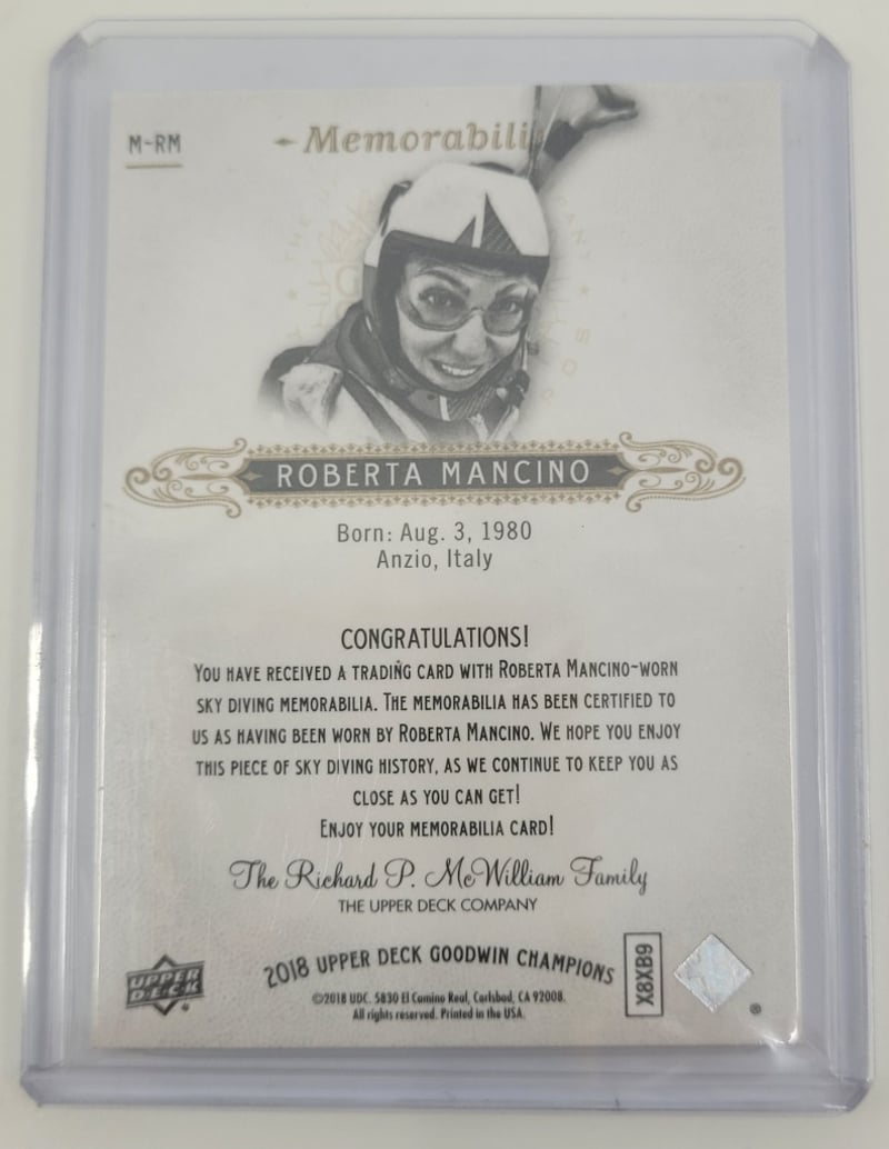 2018 UPPER DECK GOODWIN CHAMPIONS SKY DIVING MEMORABILIA PATCH ROBERTA MANCINO, # M-RM Condition: Good - Refer To Images 582908+46