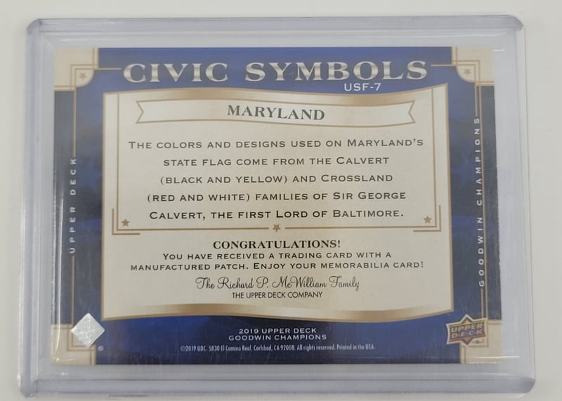 2019 UPPER DECK GOODWIN CHAMPIONS CIVIL SYMBOLS MARYLAND, # USF-7 Condition: Good - Refer To Images 582908+48
