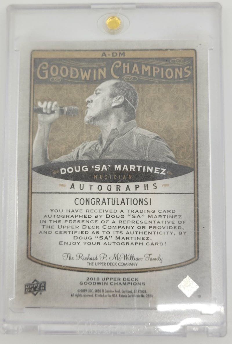 2019 UPPER DECK GOODWIN CHAMPIONS AUTOGRAPH MUSICIAN CARD DOUG 'SA' MARTINEZ, # A-DM Condition: Good - Refer To Images 582908+50