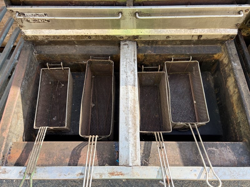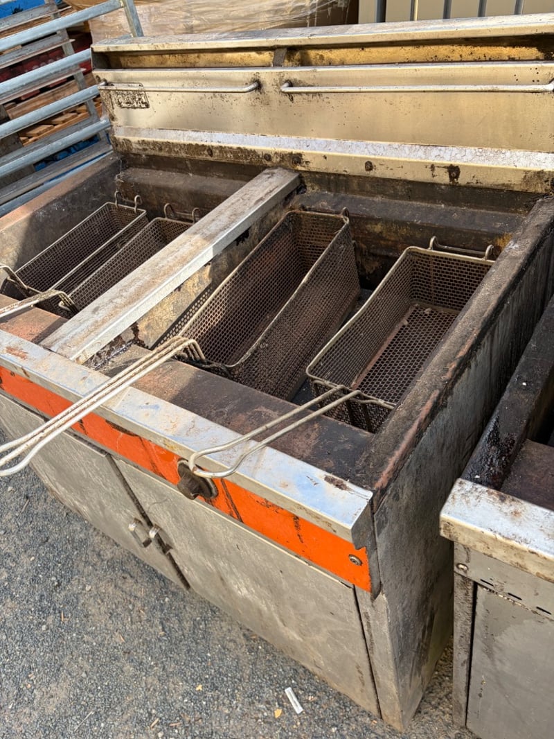 Deep fryer, x4 frying baskets and x2 lidsDimensions: H: 114cm W: 107cm D: 74.5cmSOLD AS LOT