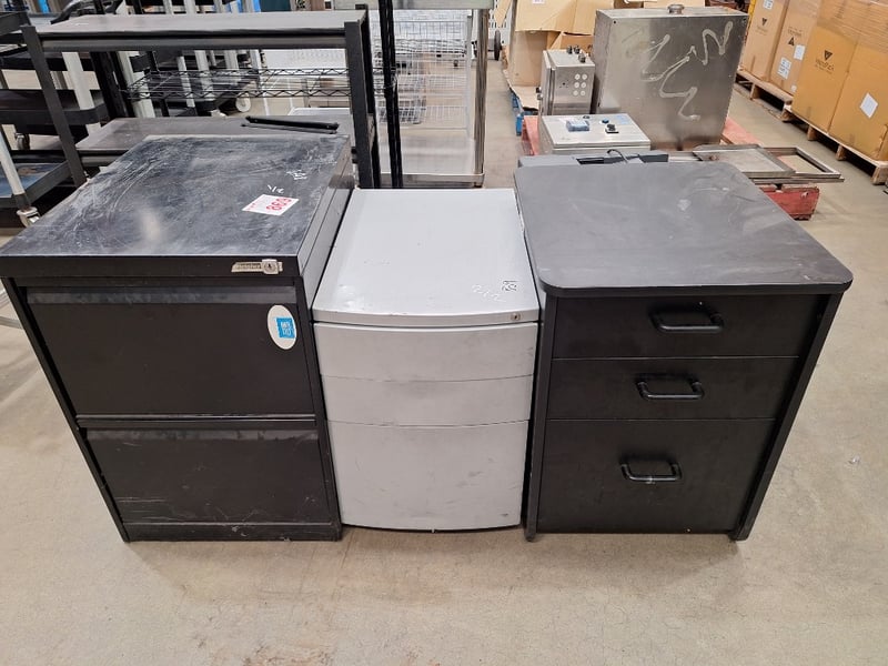 X3 Filling Cabinets, Keys Not Included Dimensions Approx H:700mm W:480mm D:630mmSOLD AS LOTPLEASE NOTE: INSPECTIONS HIGHLY RECOMMENDED, BUYER TO PROVIDE OWN LABOUR AND TOOLS FOR SAFE REMOVAL OF ASSET