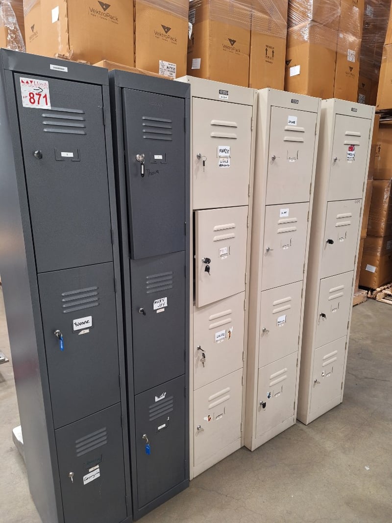 Storage LockersDimensions Approx H:1830mm W:380mm D:460mmSOLD AS LOTPLEASE NOTE: INSPECTIONS HIGHLY RECOMMENDED, BUYER TO PROVIDE OWN LABOUR AND TOOLS FOR SAFE REMOVAL OF ASSET