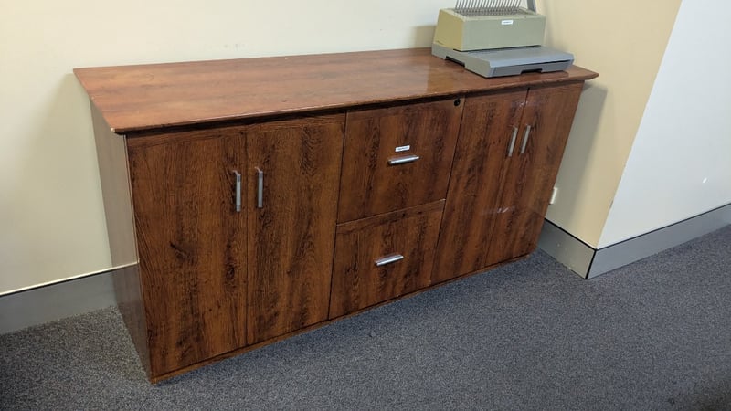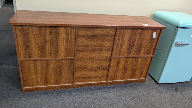 Assorted Timber Cabinets, Medium Stained Finish, Quantity 2 Dimensions:1650mm(W) x 450mm(D) x 820mm(H)nSOLD AS LOT NOTE: UPSTAIRS, INSPECTIONS HIGHLY RECOMMENDED, BUYER TO PROVIDE OWN LABOUR AND TOOLS FOR SAFE REMOVAL OF ASSET