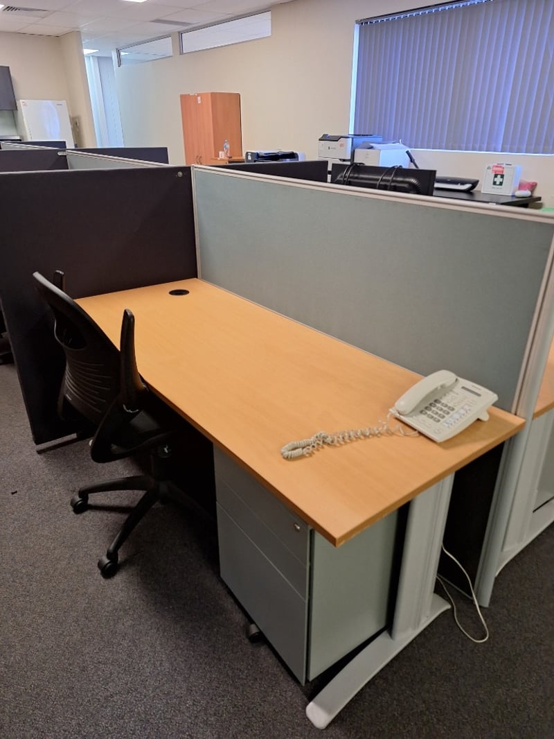 Office Room LotIncludes Desks, Chairs, Monitors & PhonesSOLD AS LOT - BUYER TO REMOVE ALLPLEASE NOTE: INSPECTIONS HIGHLY RECOMMENDED, BUYER TO PROVIDE OWN LABOUR AND TOOLS FOR SAFE REMOVAL OF ASSET