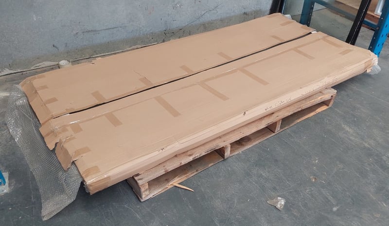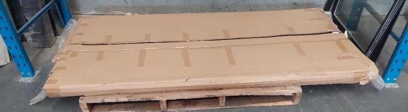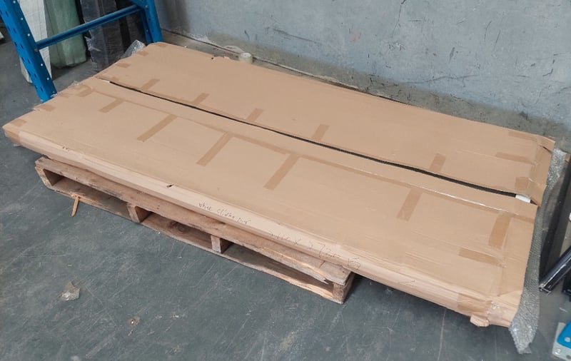 White sliding door.Dims: 211cm H, 273cm WQty per pallet.Sold as lot.Notes: signs of wear.