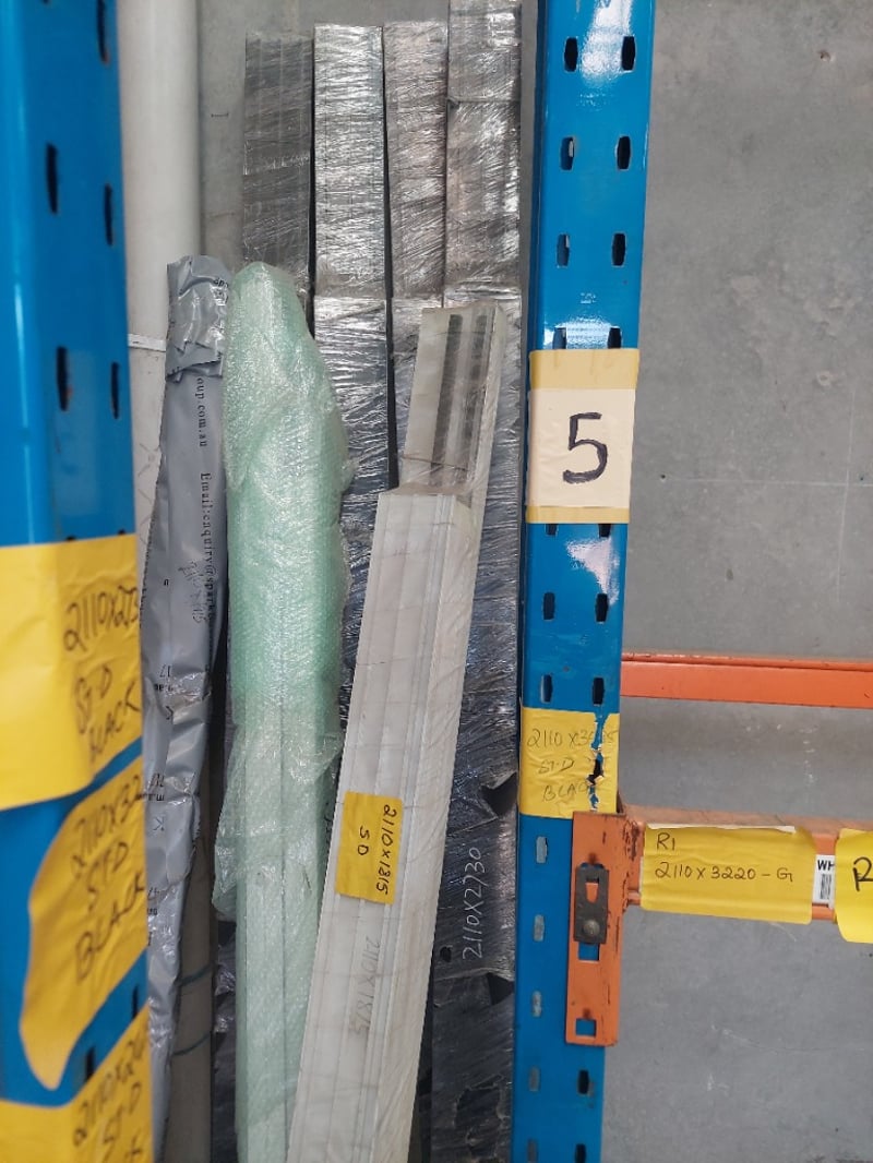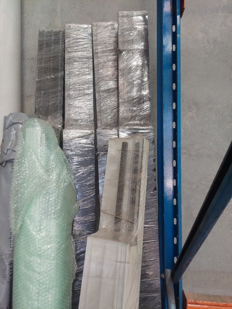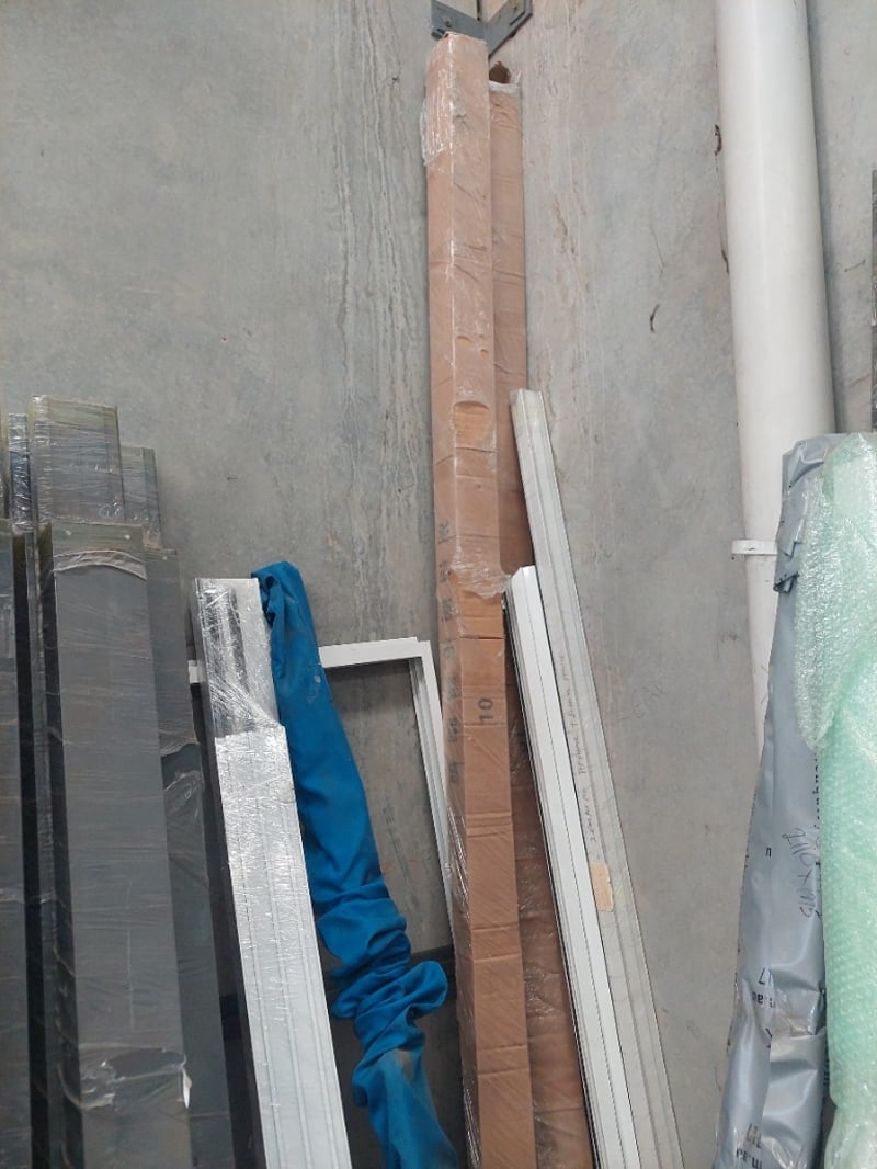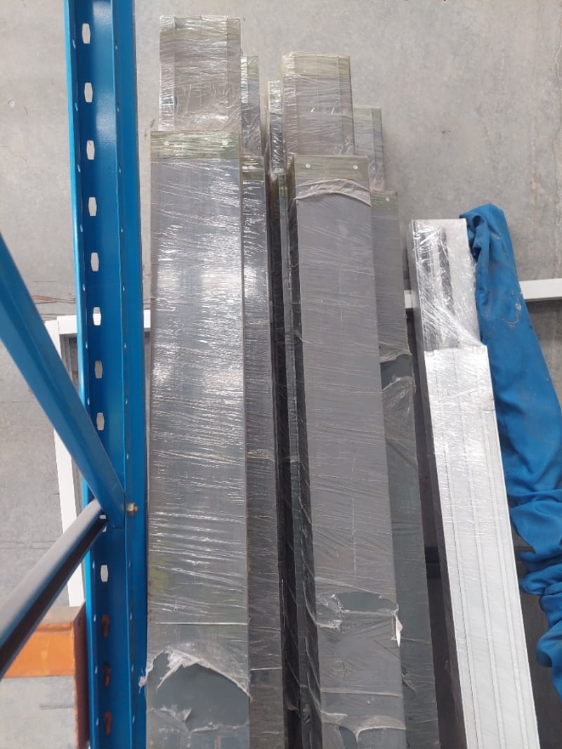 Prefabricated architectural or structural metal products, such as custom aluminium or steel sections, typically used in construction.Qty to lot.Sold as lot.Notes: signs of wear.