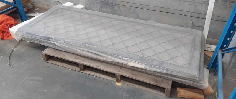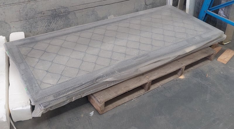 Aluminium security screen doors, Black.Dims: 205cm H, 78cm W, 3cm DQty per pallet.Sold as lot. Notes: signs of wear