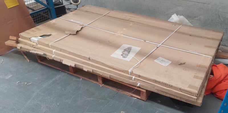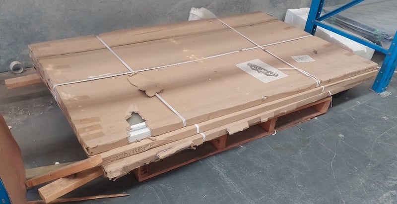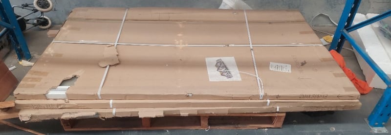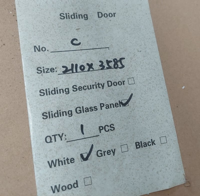 Sliding glass panel, white.Dims: 211cm H, 358cm W, 3cm D.Qty per pallet.Sold as lot.Notes: signs of wear.