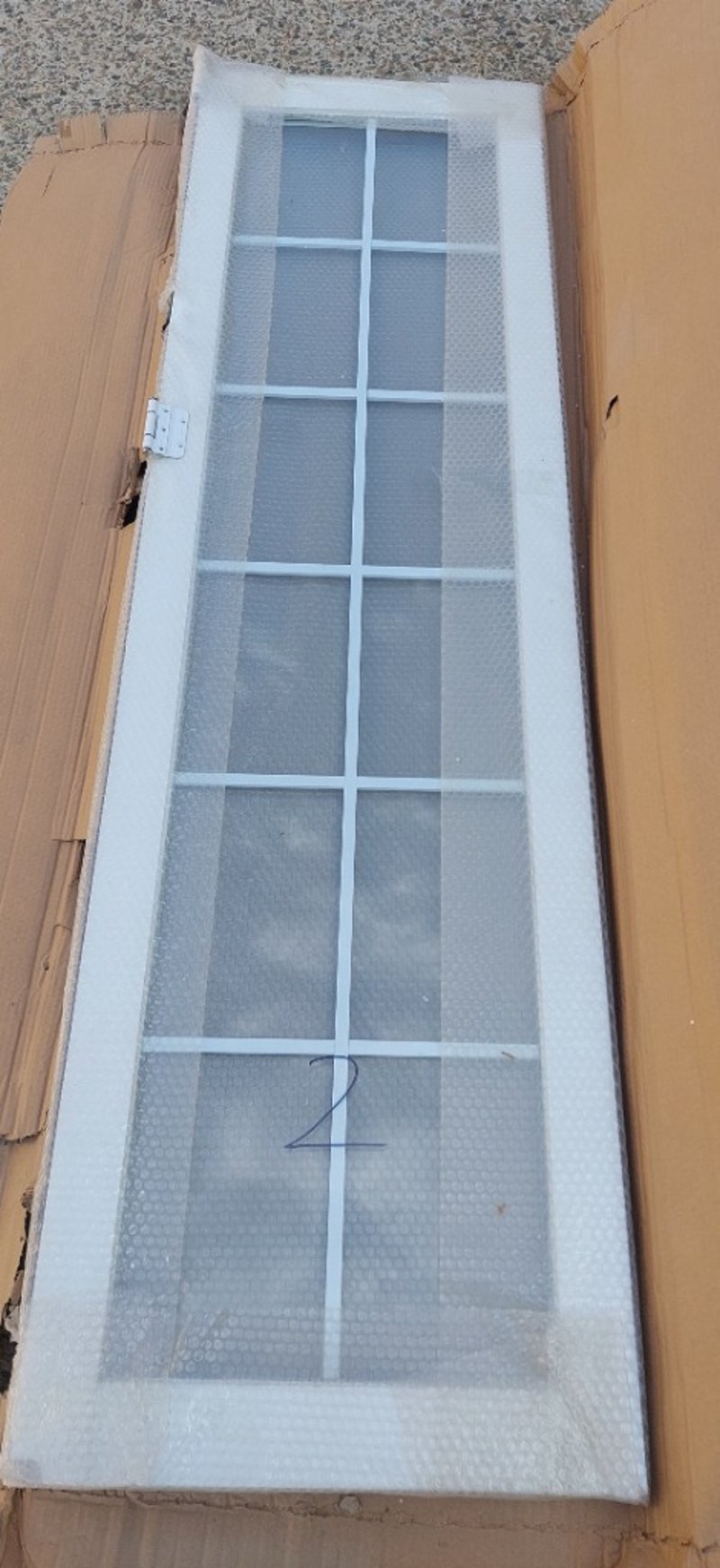 Aluminum framed glass windows.Dims: 205x55cmSold as a lot.