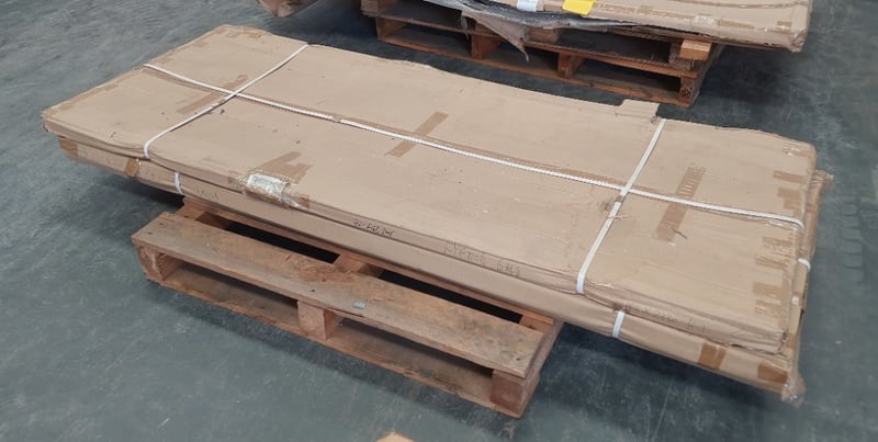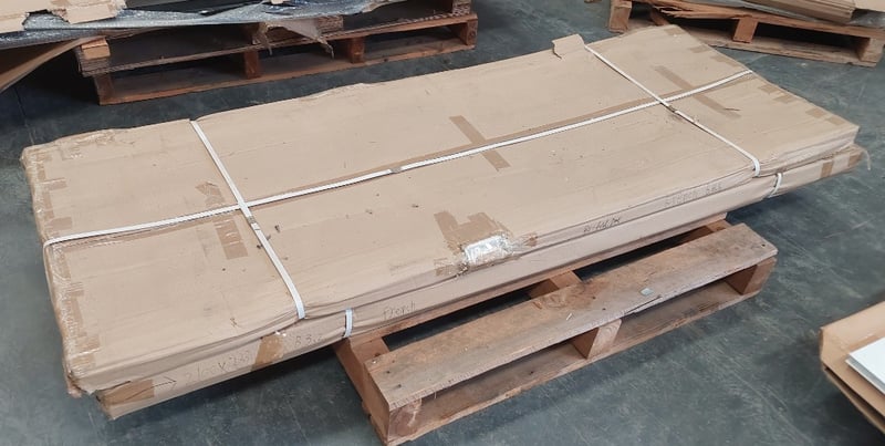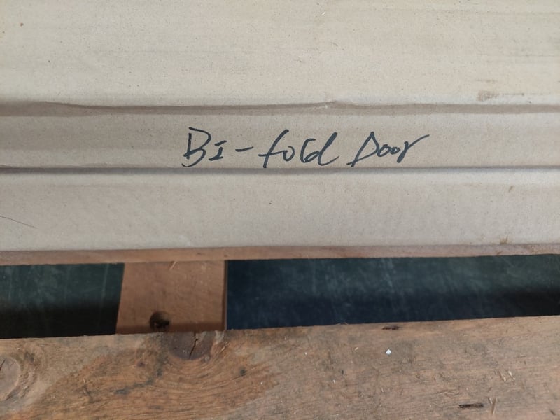 French bi fold doors white.Dims:210cm H, 233cm W, 7cm DQty per pallet. Sold as lot .Notes: signs of wear.