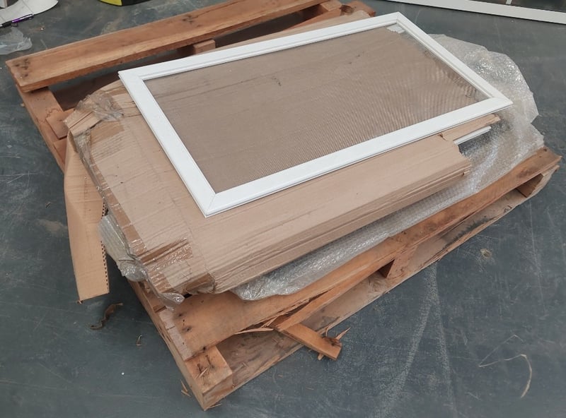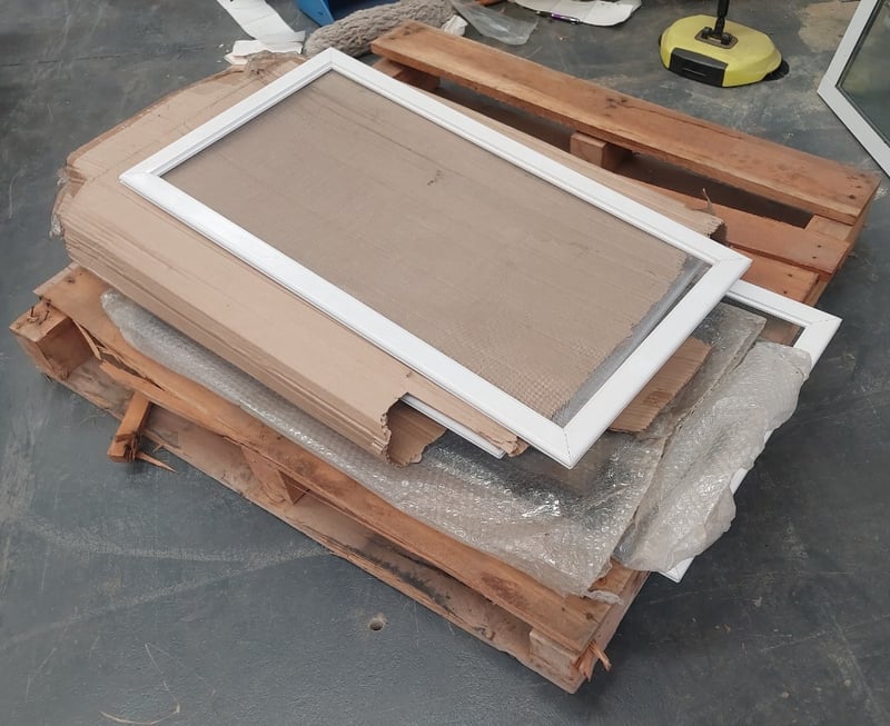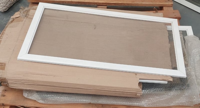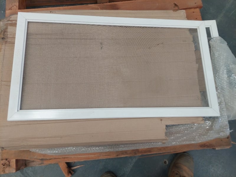Aluminium window frames meshed,Various Colours and sizes.Qty per pallet. Sold as lot. Notes: signs of wear