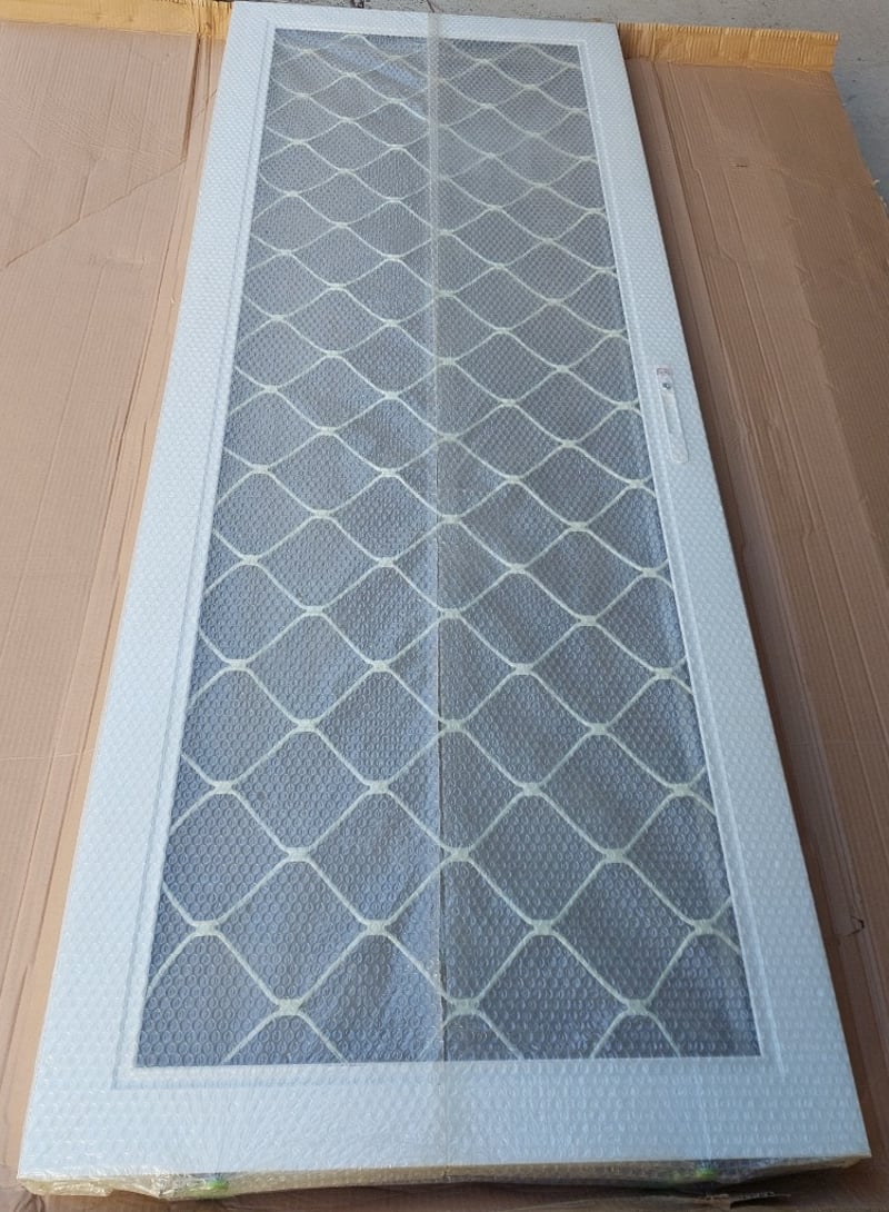 Aluminum framed mesh screen doors.Dims: 205x78cmSold as a lot.