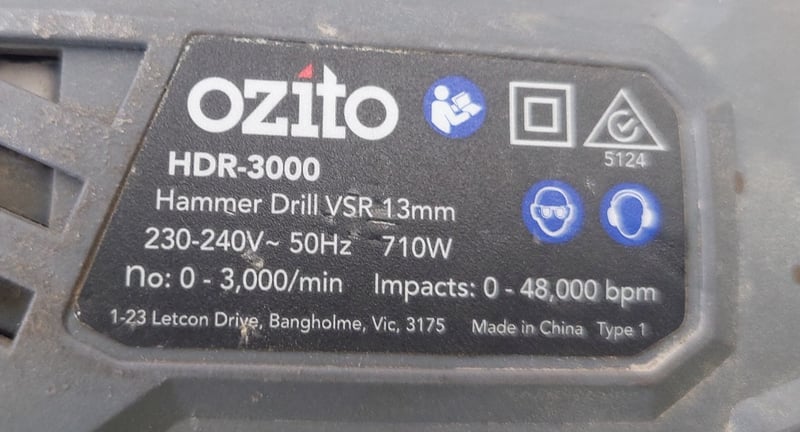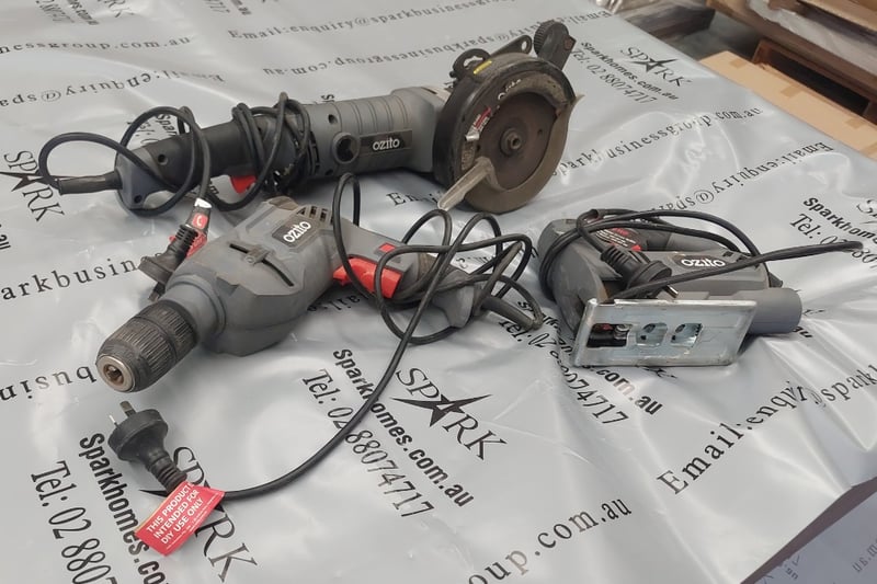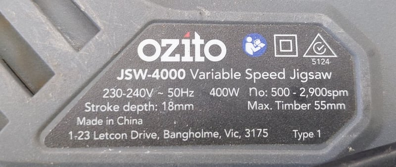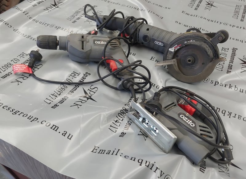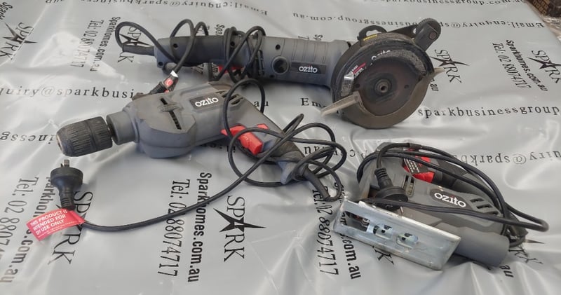 Ozito hand power tool lot, includes speed jigsaw, twin Cutter and hammer drill. Sold as lot Note: Untested,signs of wear