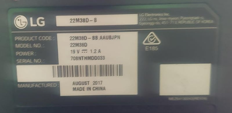 Monitor - LG 22M38D-B, 22", DOM: 08/17, S/N: 708NTHMDD033 Note: untested, signs of wear