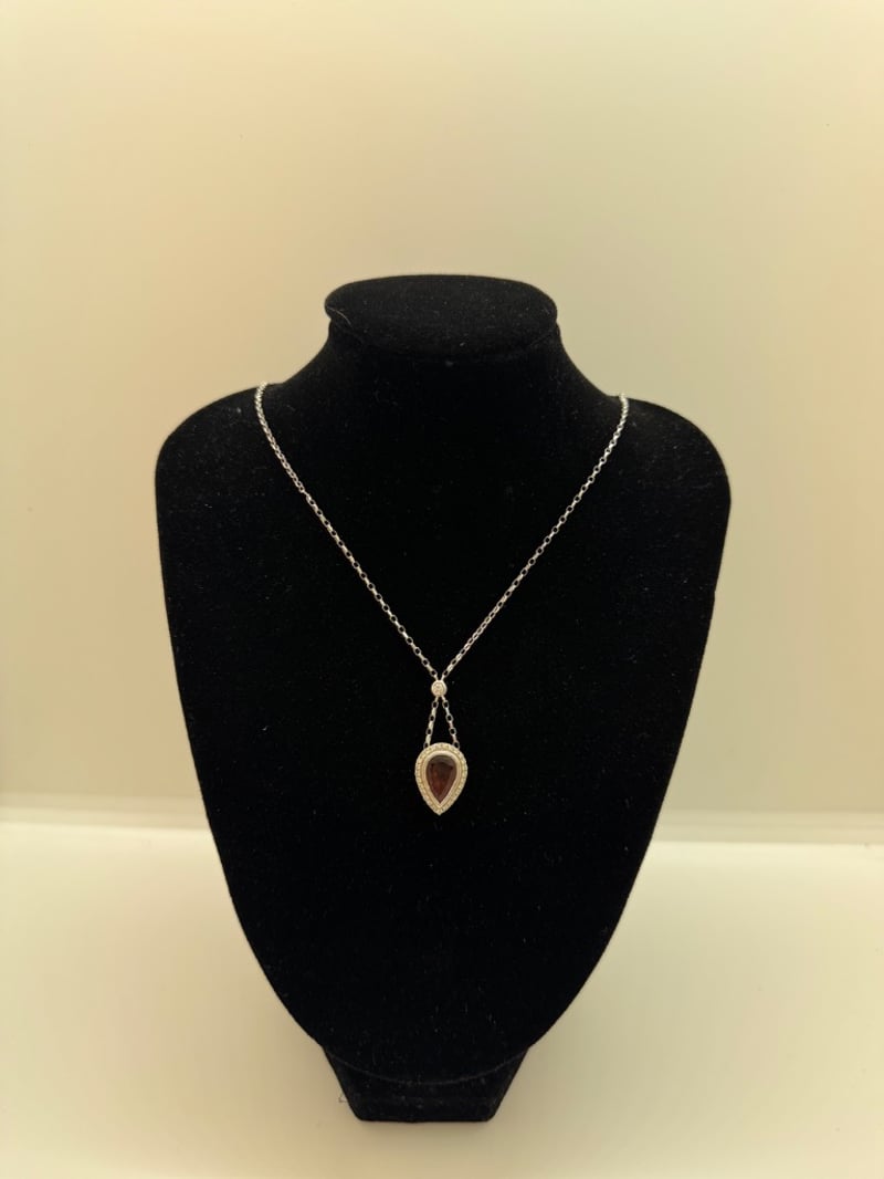 9CT PINK TOURMALINE WHITE HOLD WITH DIAMONDS NECKLACE Markings: Stamped ‘375' Condition: Good - Refer To Images 584498+17