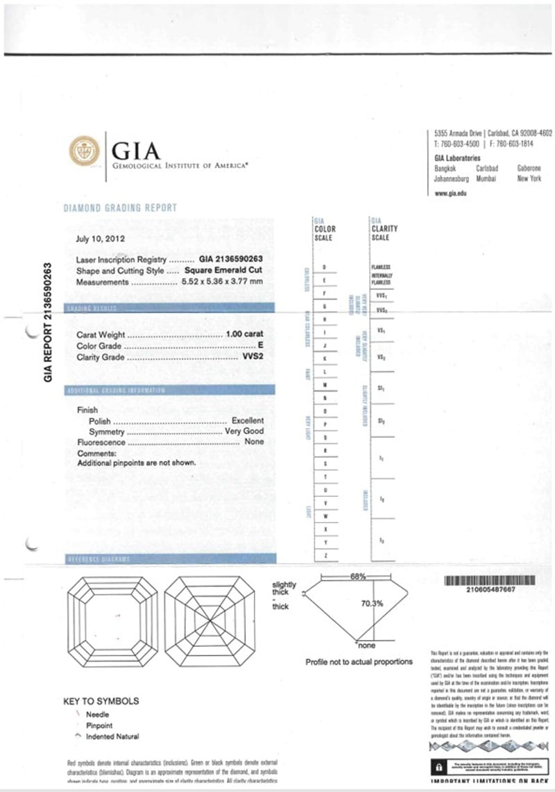 Diamond - Cut: Emerald, Clarity: Vvs2, Colour: E, Size: 5.52Mm(L) X 5.36Mm(W) X 3.77Mm (D-Estimated)