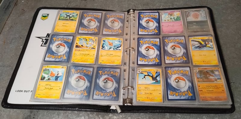 ASSORTED COLLECTION OF FOLDERED POKEMON AND NBA TRADING CARD 584503+12