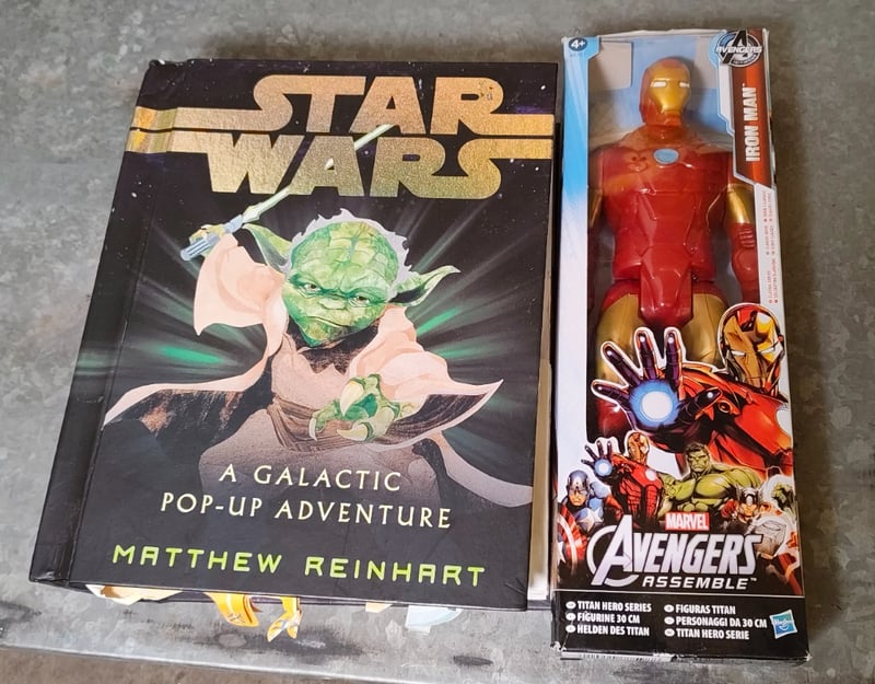 STAR WARS: A GALACTIC POP-UP ADVENTURE BOOK AND MARVEL'S AVENGERS IRON MAN FIGURINE