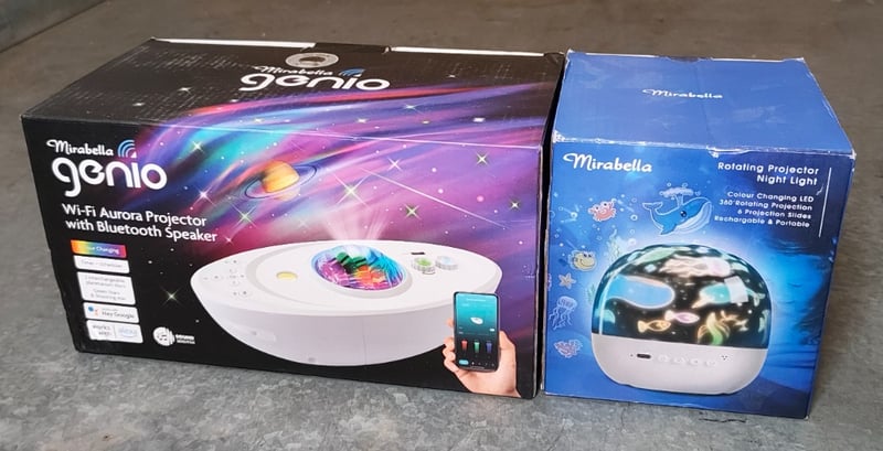 MIRABELLA CHILDREN'S PROJECTOR ELECTRONICS Includes:Genio Wi-Fi Aurora Projector With Bluetooth SpeakerRotating Projector Nightlight 584503+28
