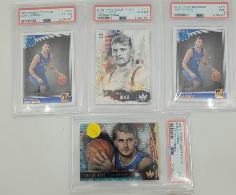 PSA GRADED 2018 PANINI COURT KINGS LUKA DONCIC #117, GEM MT 10 PSA GRADED 2018 PANINI DONRUSS LUKA DONCIC #177, EX-MT 6 PSA GRADED 2018 PANINI DONRUSS LUKA DONCIC, ACETATE ROOKIES #7, MINT 9 Condition: Good - Refer To Images 582908+1