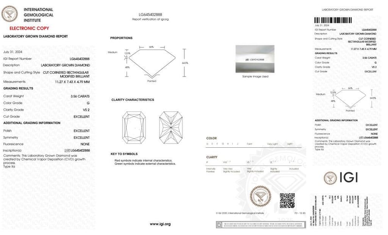 Please note that while all lab grown diamonds listed include certification, the report number or identification may vary upon arrival. This is due to standard manufacturing and batching processes. However, the diamond’s specifications — including carat, color, cut, and clarity — will match or may even exceed those advertised.