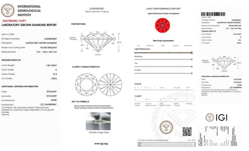 Please note that while all lab grown diamonds listed include certification, the report number or identification may vary upon arrival. This is due to standard manufacturing and batching processes. However, the diamond’s specifications — including carat, color, cut, and clarity — will match or may even exceed those advertised.