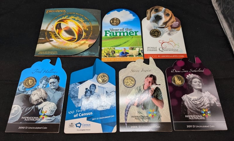 COLLECTION OF ROYAL AUSTRALIAN MINT COMMEMORATIVE COINS Includes 2003 Lord Of The Rings Coins, 2012 Australian Year Of The Farmer One Dollar Unc, 2008 Centenary Of Quarantine One Dollar, Etc 584448+15