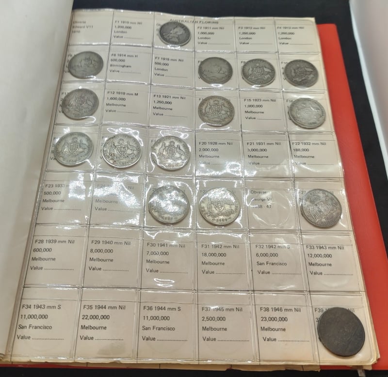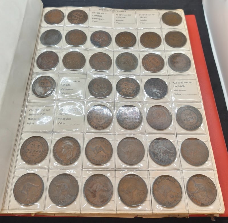 FOLDERED COLLECTION OF AUSTRALIAN COINS FROM 1911 - 1982