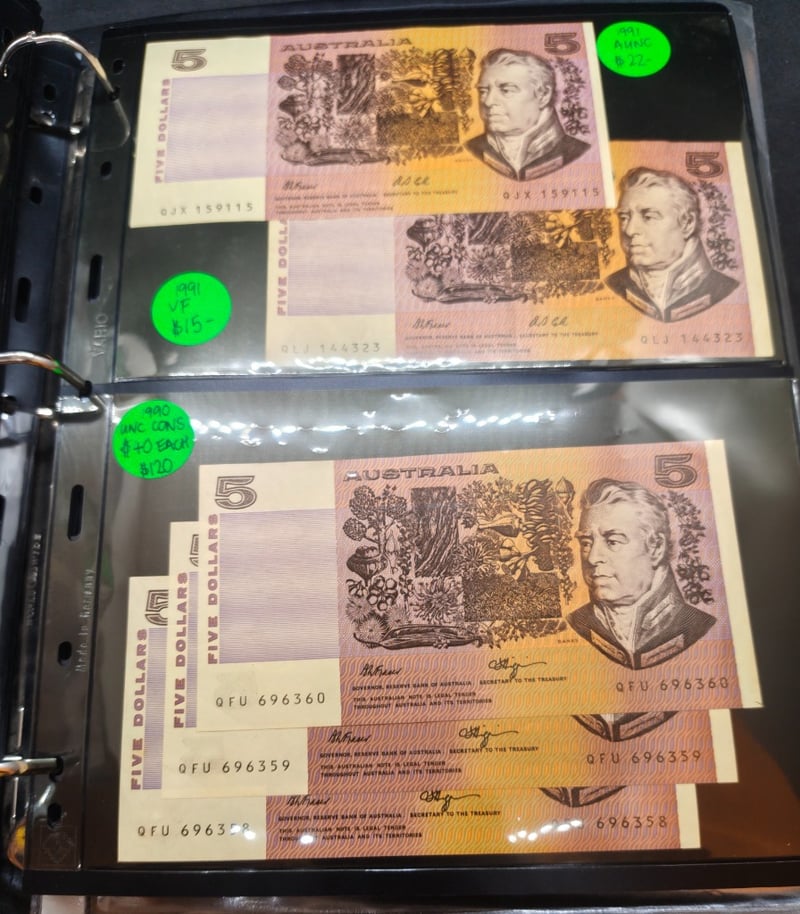 FOLDERED COLLECTION OF AUSTRALIAN BANK NOTES ACACIA RIDGE 584448+39