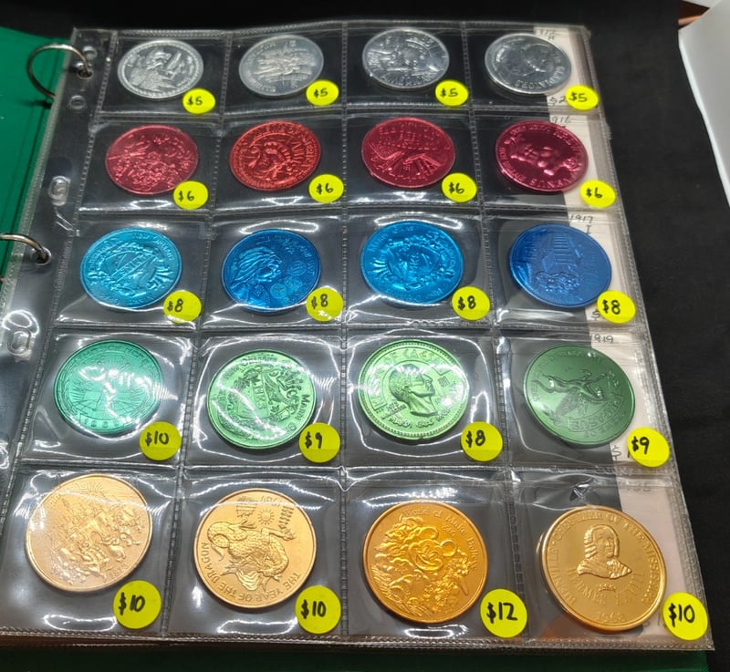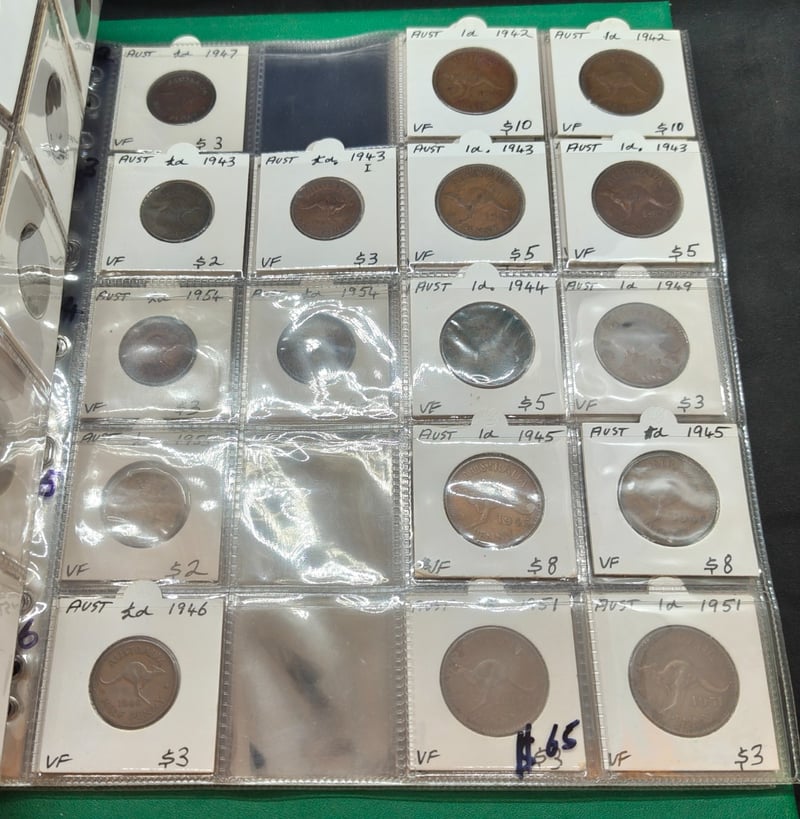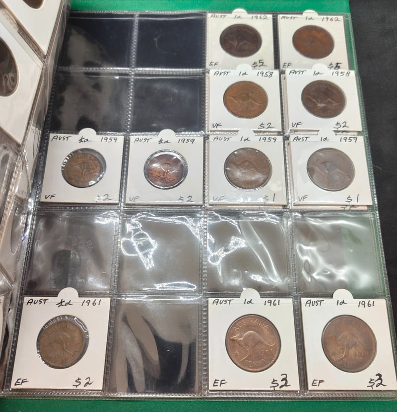 FOLDERED COLLECTION OF AUSTRALIAN COINS AND COLOURED COMMEMORATIVE COINS