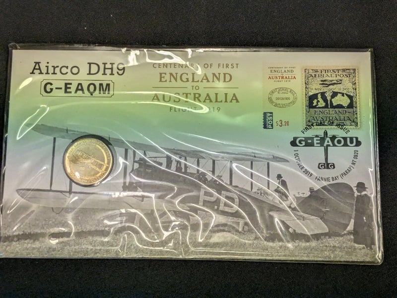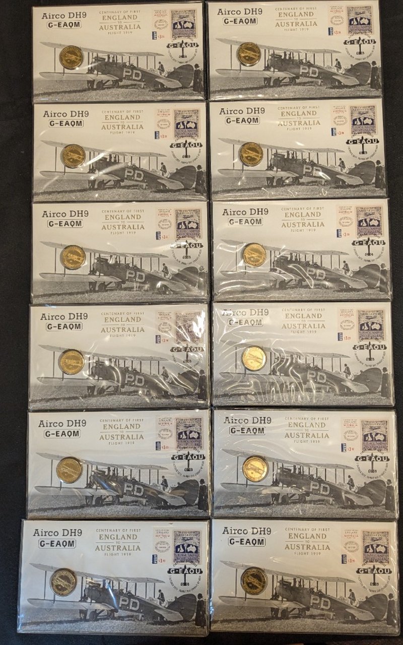 TWELVE AUSTRALIAN POST 1919 CENTENARY OF FIRST ENGLAND TO AUSTRALIA FLIGHT COIN 584448+42