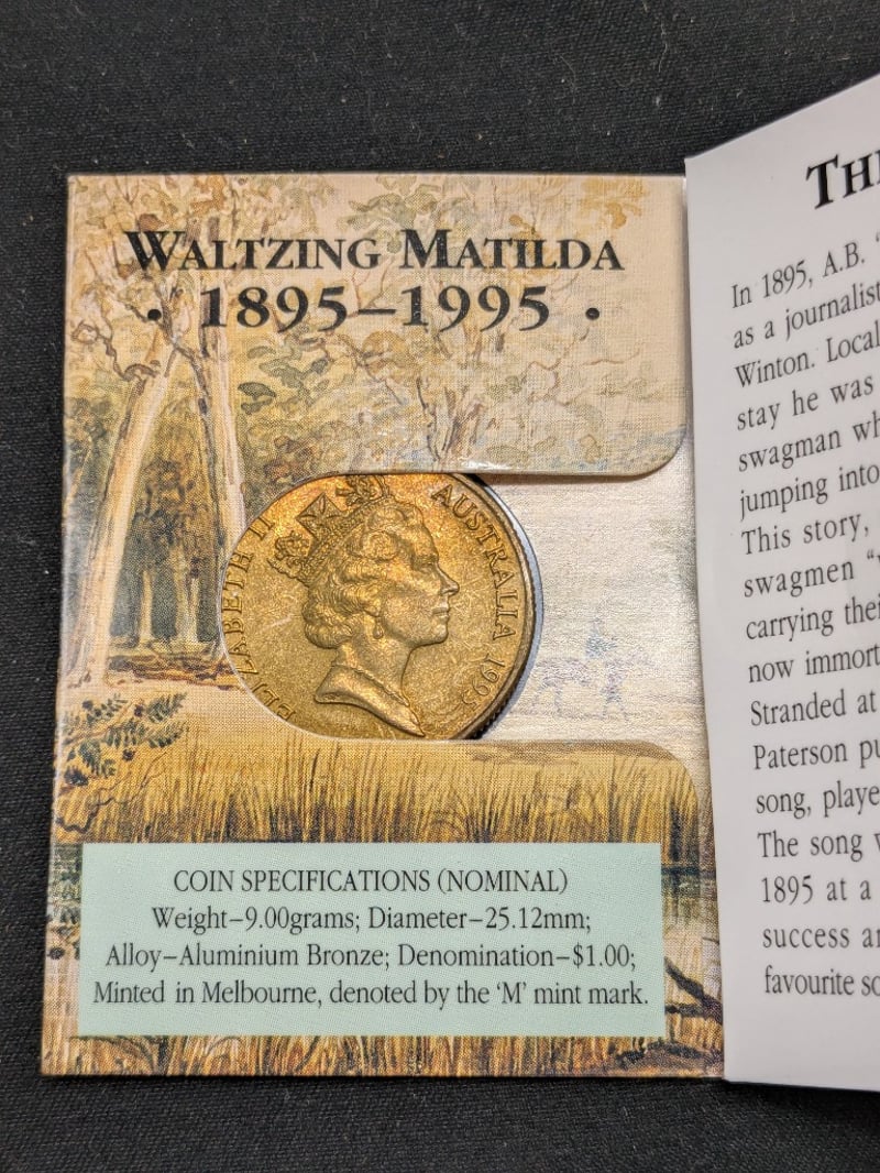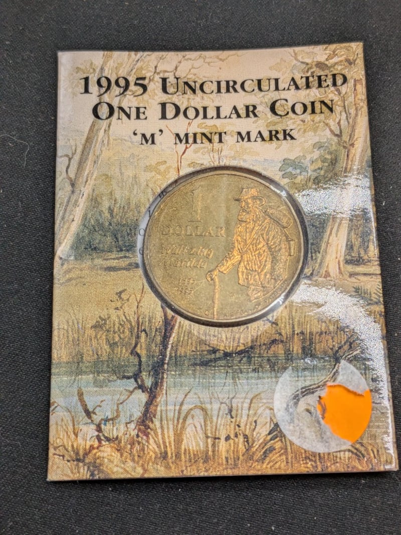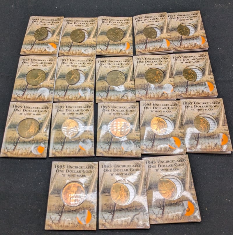 1995 UNCIRCULATED ONE DOLLAR COINS 'B' AND 'M' MINT MARKS - WALTZING MATILDA COMMEMORATIVE COLLECTION Condition: Unc 584448+55