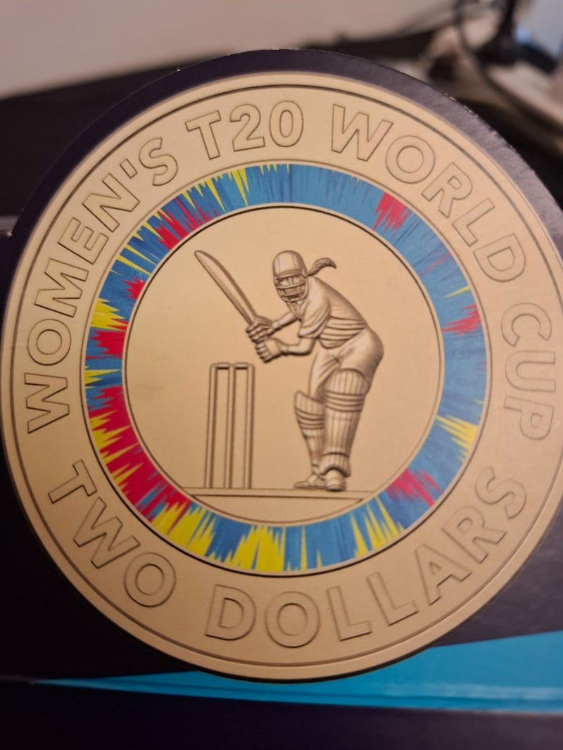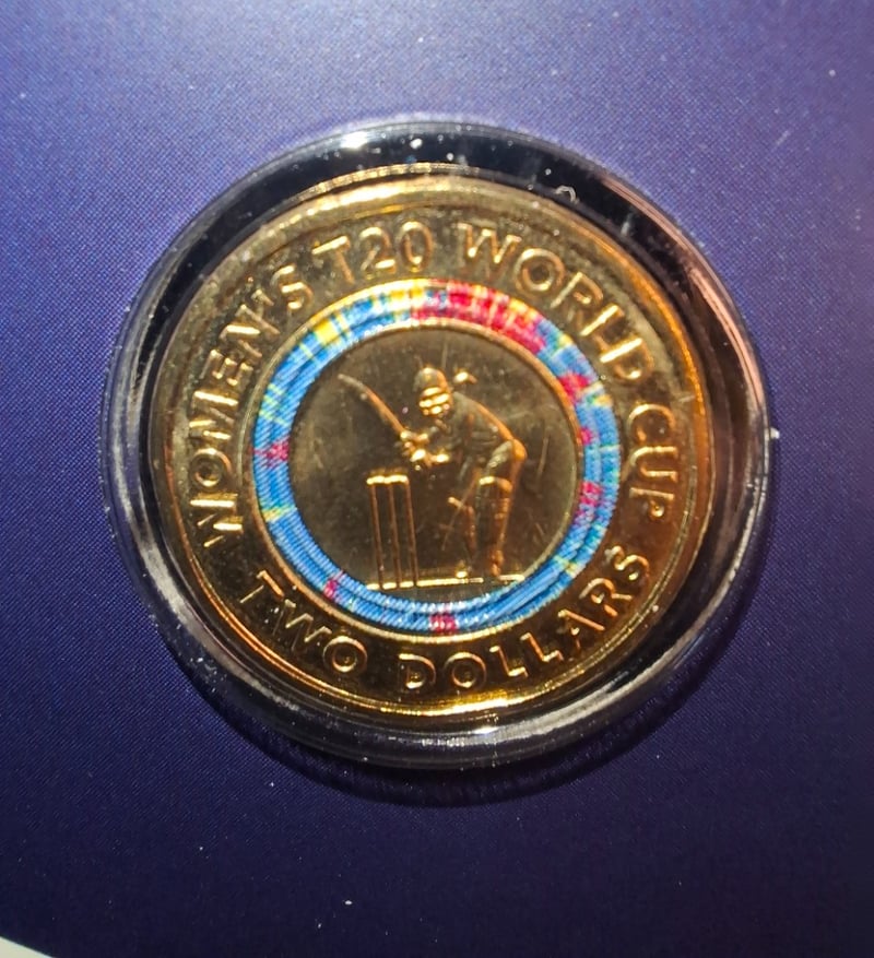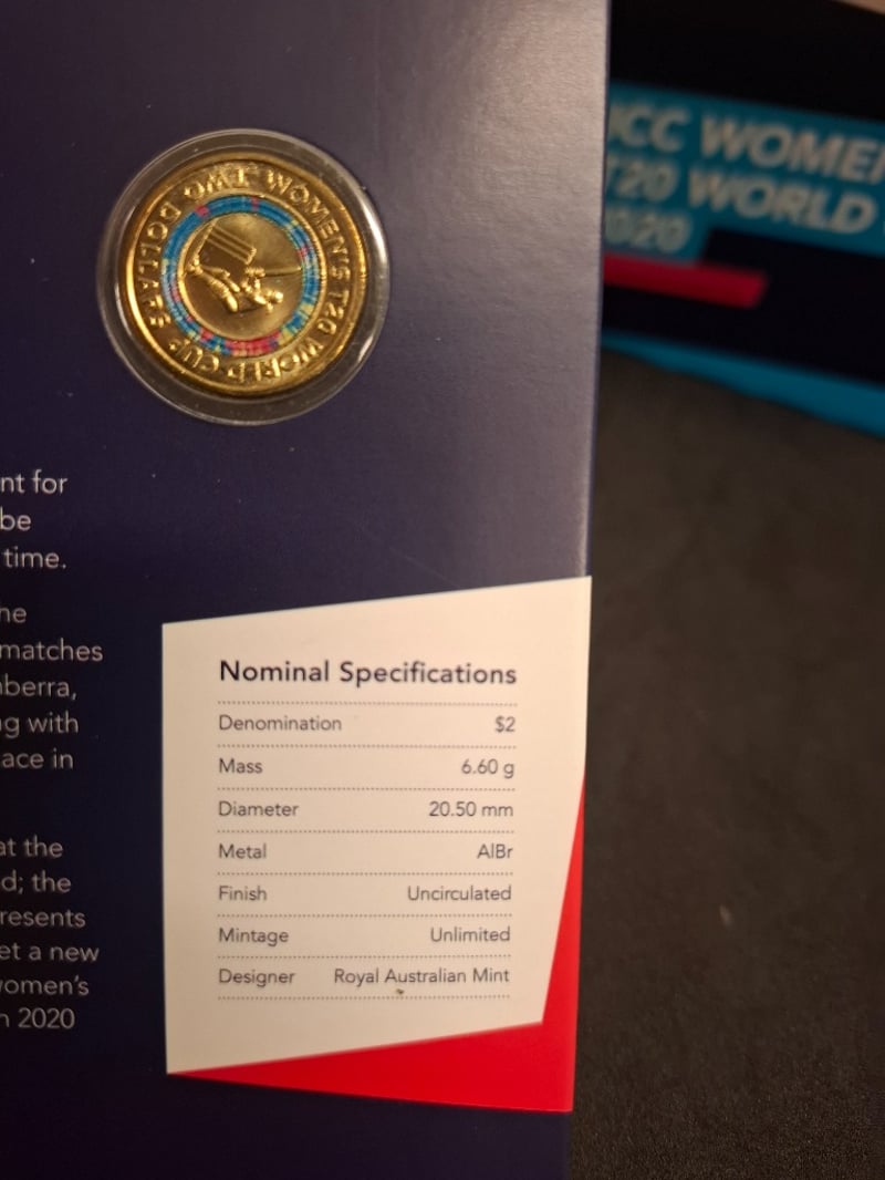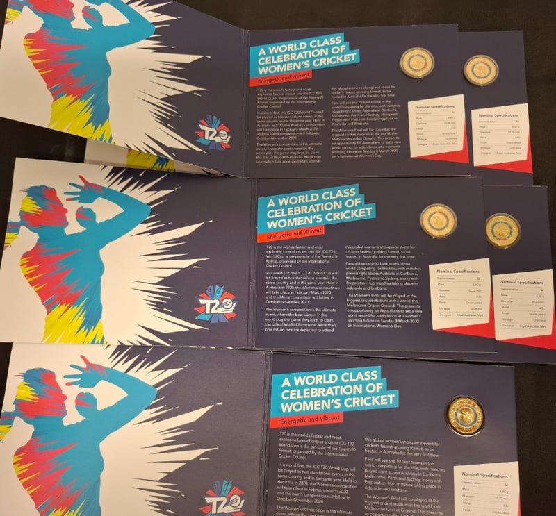 FIVE 2020 WOMENS T20 WORLD CUP COMMEMORATIVE TWO DOLLAR COLOURED UNCIRCULATED COINS 584448+57