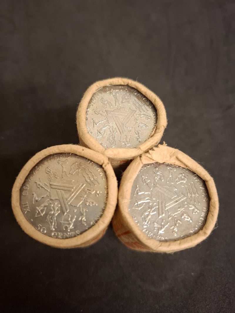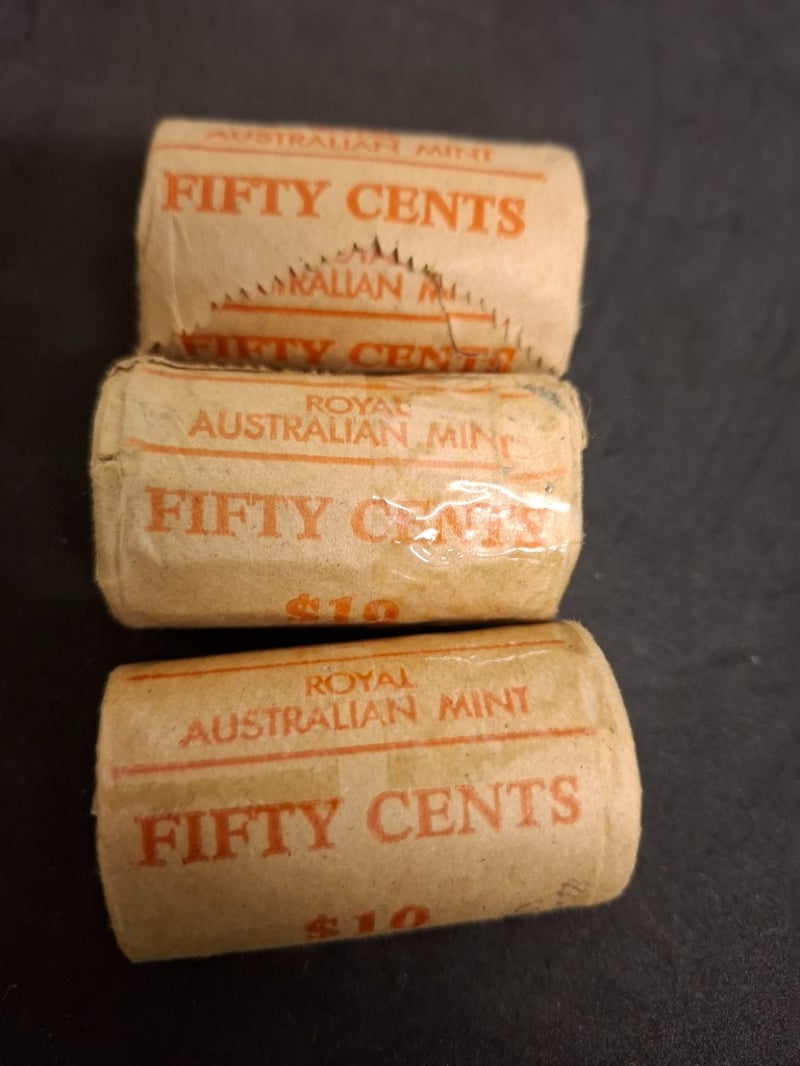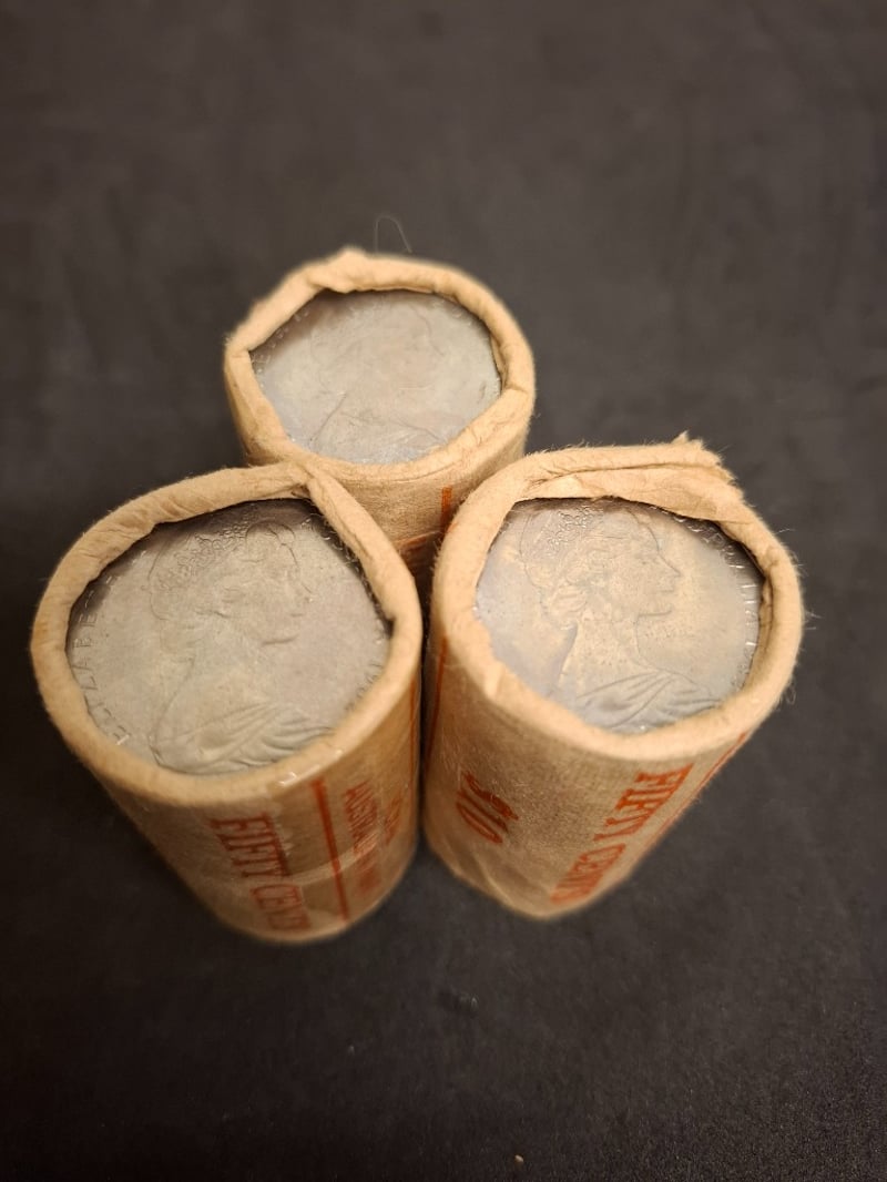 THREE1982 XII COMMONWEALTH GAMES BRISBANE FIFTY CENTS COIN ROLLS 584448+59
